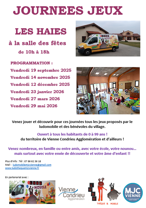 Renseignements et inscription auprès de la mairie des Haies. Tel : 04 74 56 89 99