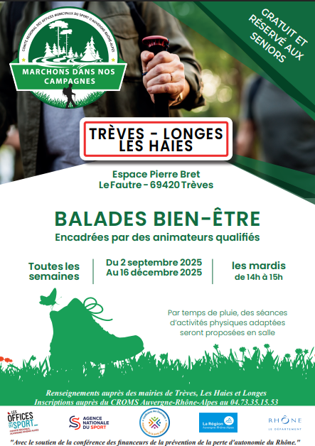 Balades bien-être gratuites pour les seniors +60 ans sédentaires de Longes, Trèves, Les Haies.